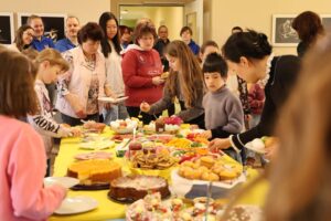 Jede Familie steuerte dem Buffet etwas Leckeres bei und gemeinsam genossen wir unser großzügiges Frühstück.