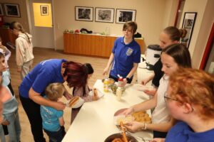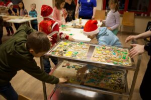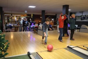 Mit einem gemütlichen Kinderpunsch und Keksen startete die Weihnachtsfeier der Kinder. Danach teilten wir uns in zwei Gruppen. Während die größeren Kinder zum Bowling gingen, war bei den Kleineren Plätzchen backen angesagt.