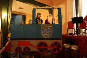 Der Weihnachtsmann musste sich dieses Jahr mit dem Spielmanns-ZUG durch verschiedene Länder und Städte fortbewegen, denn sein Schlitten ging kaputt. Zusammen mit dem Lokführer lernten die beiden und auch wir neue Musik und Kulturen kennen.